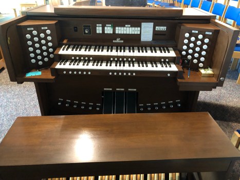 For fifteen years this church was graced by the work of Pat Roth at the organ, and sometimes piano. We are now searching for someone to take up that role in a time in which organists are somewhat scarce on the ground, while in the meantime Julia is stepping in to keep the instrument sounding and the choir accompanied. Both that organ and the piano are heard frequently in worship, whether in support of the choir or individually, and sometimes other instruments also make their sonic appearance in worship as well. The occasional tambourine or small drum or claves might sound in support of certain hymns; Jennifer might occasionally bring out a guitar for similar purposes; and verrrrrry occasionally Aidan Collins can be prevailed upon to play that fiddle in worship.