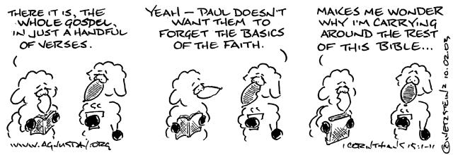 The Onion is not a thing that Paul would understand at all, but that line? He’d know exactly who it was talking about; it’s a pretty darned apt expression of how those “enemies of the cross” live, all centered on the pleasures of this earthly life and headed toward a disastrous end. The idea of “taking up their cross” and following Jesus was the farthest thing from their minds, even if they were the type to give lip service to being a Christian.