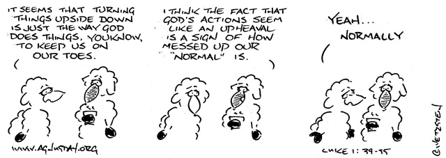 This intimate kind of “daddy”-ness is reinforced in the concluding lines of this section, a direct reference to the parable of Luke’s reading. A typical patriarchal father of biblical times might well have tossed the younger son out of the household with not a possession to his name for making such a request, and then would absolutely not have received the son so warmly and lavishly upon his return. Yet this father does quite the opposite of societal expectations in both cases. When Jesus called God “Abba,” something like this comes close.