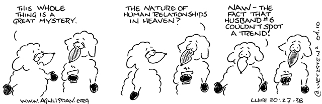 The metaphors Jesus uses here are of the chilling type that get exploited by the less-ethical self-proclaimed preachers and teachers who do the exact thing that Jesus warns against. Right up front in verse 24 Jesus warns that nobody knows – not even Jesus himself! – when that hour might come. The end of this reading reinforces that disturbing statement, with its declaration that “the Son of Man is coming at an unexpected hour.” I’m guessing I don’t need to remind you how many of those self-proclaimed preachers and teachers have been exposed so far by picking days and hours that passed by with no coming of the Son of Man.